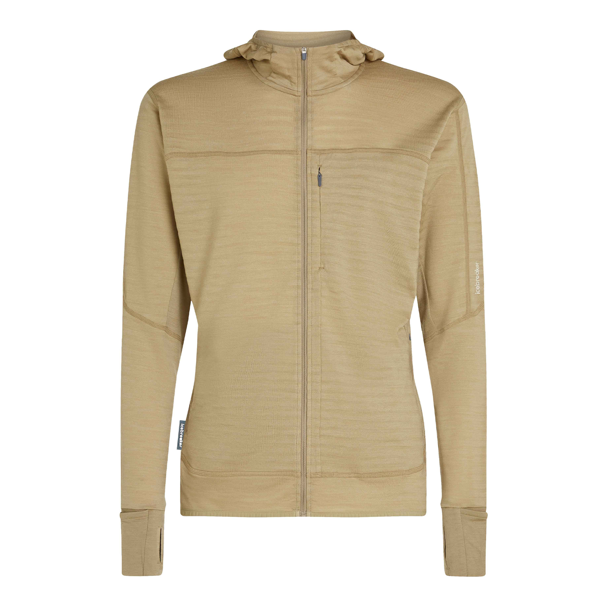 The Icebreaker 300 RealFleece™ Descender LS Zip Hoodie is A technical hooded fleece mid layer ideal for cold, aerobic days outside. Made with RealFleece™—a brushed merino wool blend that delivers warmth without weight—it provides natural breathability and comfort for layering. A fitted, helmet-compatible hood, thumb loops, and a drop-tail hem enhance coverage, while offset shoulder seams, flatlock stitching, chin guard, and interior storm flap minimize friction. Zippered chest and hand pockets with merino linings add secure storage and soft comfort.