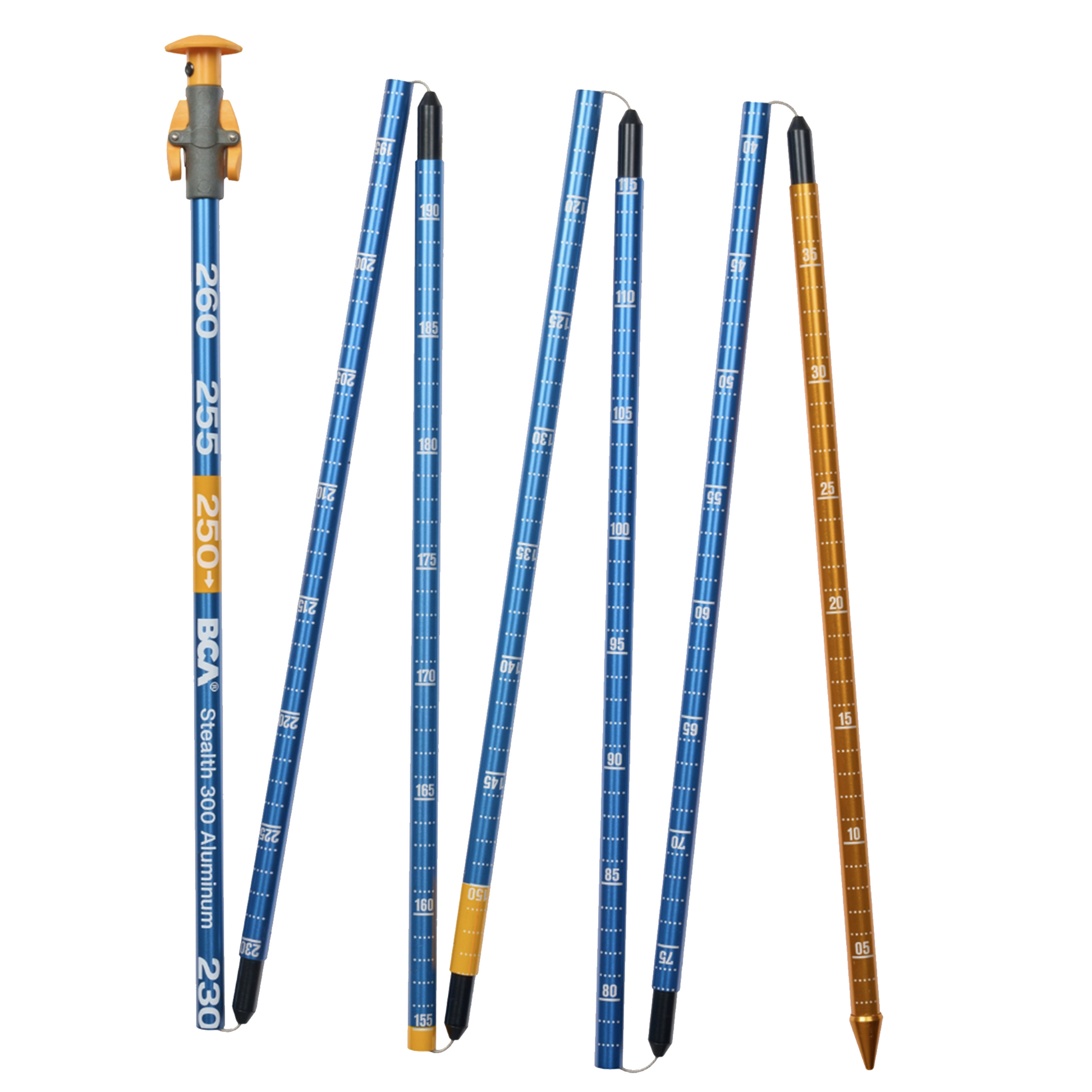 BCA’s updated probes feature dual-sized depth markings that are easy to see when you’re performing a rescue or logging a snow profile. Pro-level aluminum models are laser-etched to prevent wear. Our Stealth Quick-Lock hardware creates a smaller bundle when folded up and eliminates loose cables that can whip you in the face when you’re furiously probing. Designed to meet the UIAA standard for avalanche rescue probes.