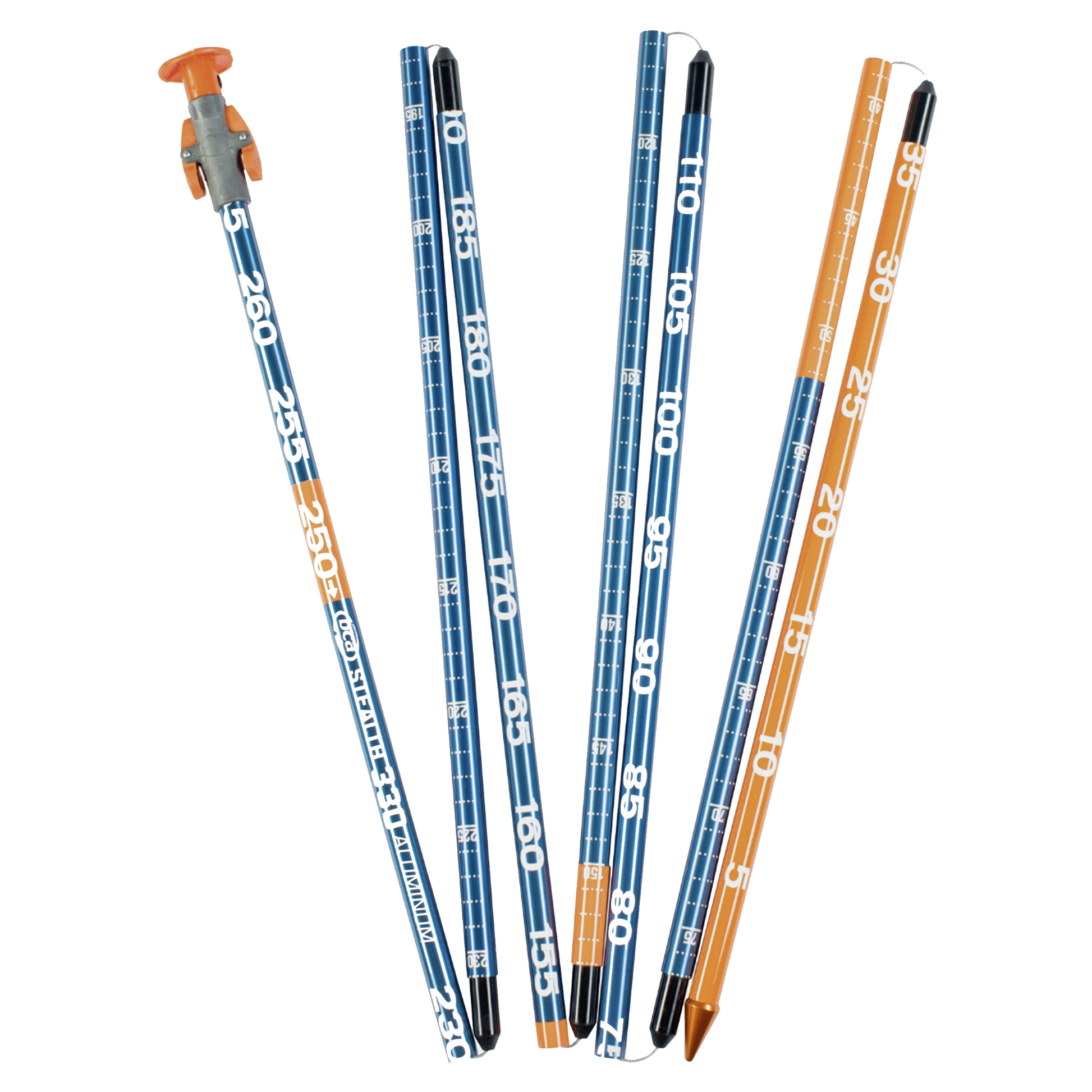 BCA’s updated probes feature dual-sized depth markings that are easy to see when you’re performing a rescue or logging a snow profile. Pro-level aluminum models are laser-etched to prevent wear. Our Stealth Quick-Lock hardware creates a smaller bundle when folded up and eliminates loose cables that can whip you in the face when you’re furiously probing.