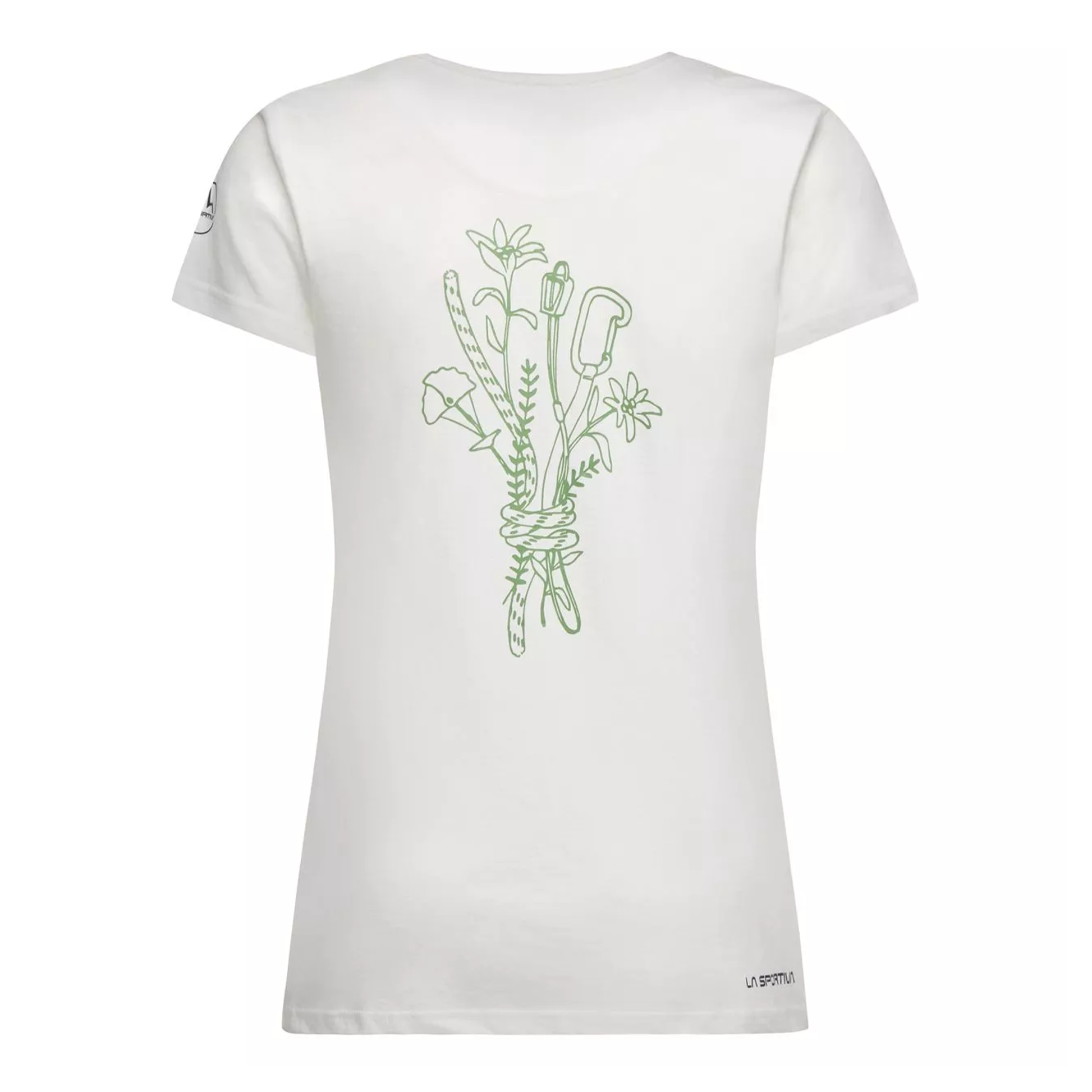 The La Sportiva Climb On Flower T-Shirt is a lightweight, breathable tee designed for climbers and outdoor enthusiasts who appreciate both comfort and style. Made from 100% organic cotton, it offers a soft feel against the skin, making it ideal for warm-weather crag sessions, bouldering, or casual wear. The slim fit ensures a flattering silhouette, while the distinctive Climb Flower graphic on the back adds a touch of climbing-inspired artistry.