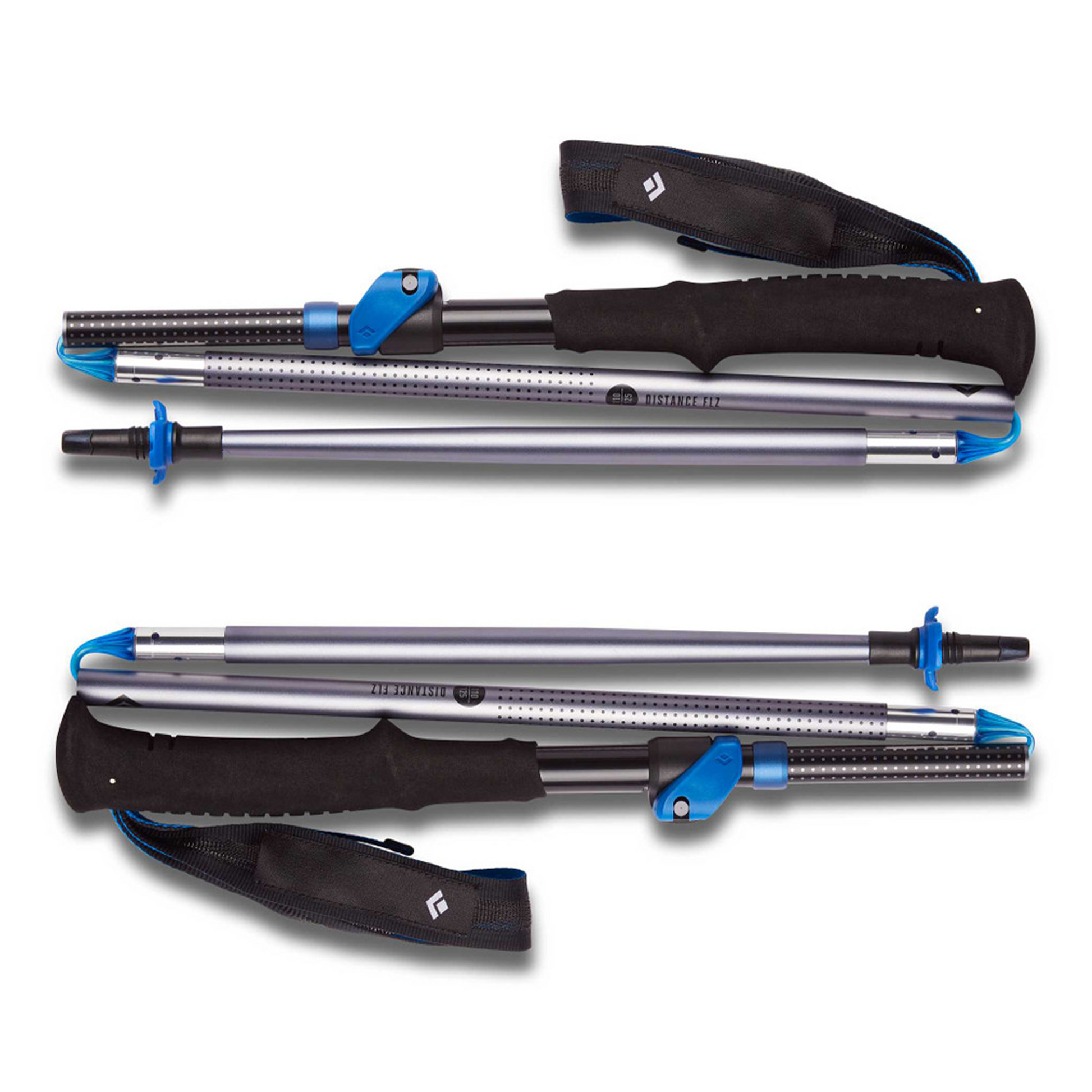 The Black Diamond Distance FLZ Poles are built for fast-moving adventures, combining a collapsible Z-pole design with FlickLock® adjustability for quick length changes. Made with durable aluminum, they offer a balance of strength and weight savings. The lightweight EVA foam grip ensures comfort, while the breathable strap provides secure handling. With reinforced joints for added stability and interchangeable carbide and rubber tips, the Distance FLZ poles are ready for varied terrain.