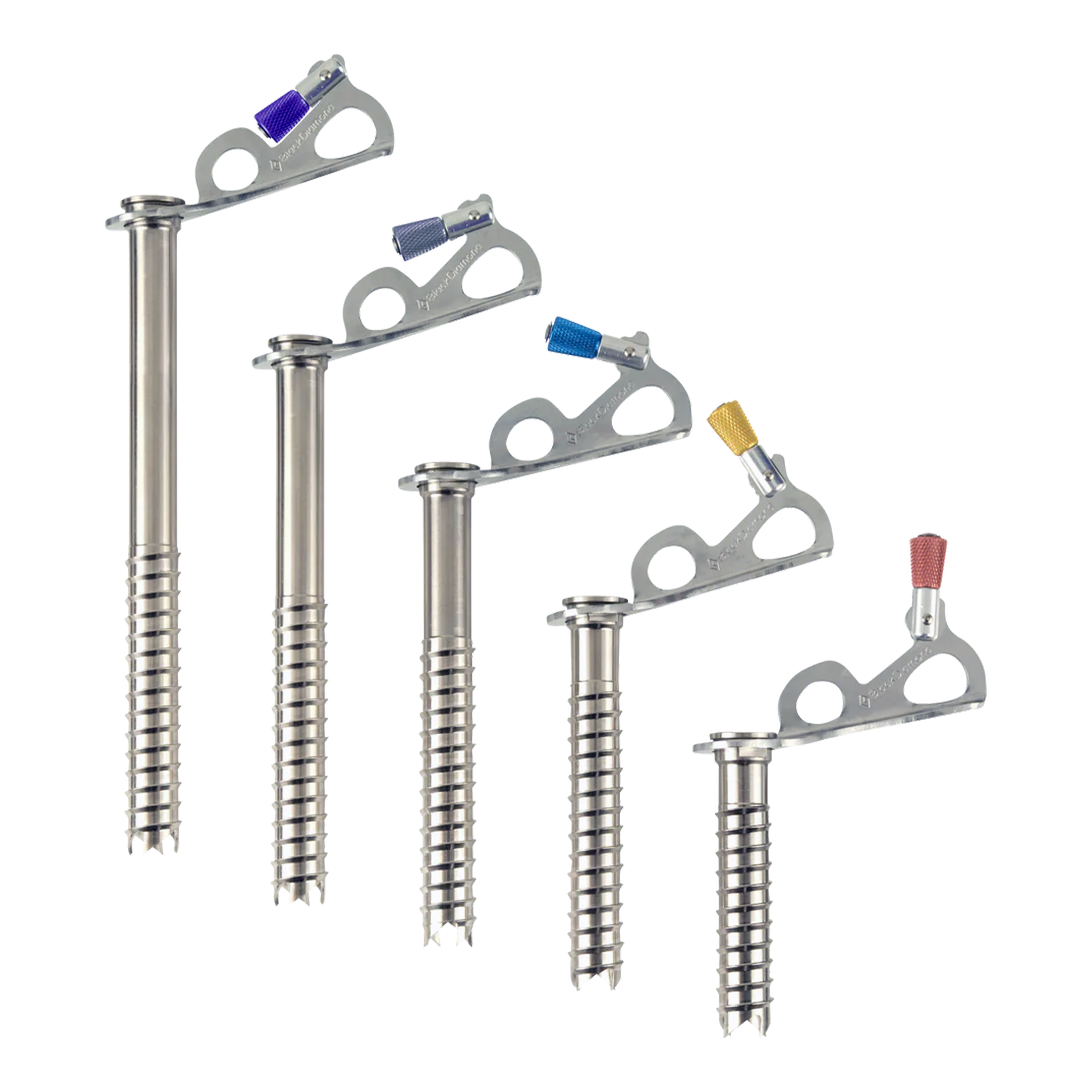 The Black Diamond Express Ice Screw features a tapered tube where the teeth cut a hole just larger than the tube itself, for less friction during placements. The chromoly steel tube provides exceptional durability, while the stainless steel hanger features two clip points. A large, color-coded crank knob makes for easy size identification and uninterrupted 360-degree motion.