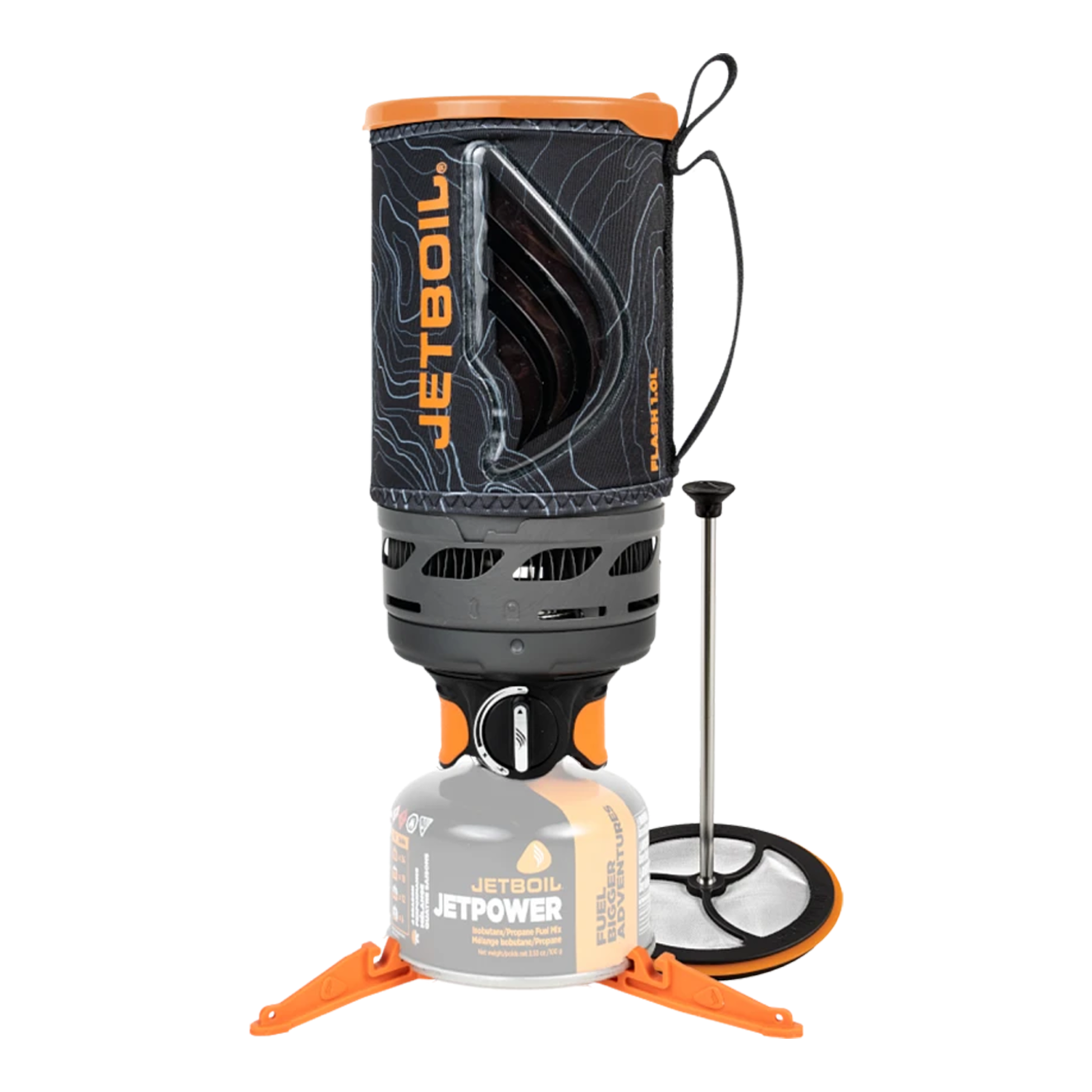 The Jetboil Flash Java Kit brings barista-quality coffee to the backcountry, boiling water in just 120 seconds. Its 1.0L FluxRing hard-anodized aluminum cooking cup with an insulating cozy ensures optimal heat retention, while the turn-and-click igniter provides instant startup. A built-in thermochromatic heat indicator changes color when your water is ready, and the sip-through lid with a pour spout and strainer adds convenience. The included coffee press transforms the system into a lightweight French press, and everything stows neatly inside. Whether you're backpacking, car camping, or fueling up before a summit push, the Flash Java Kit lets you enjoy great coffee—fast.