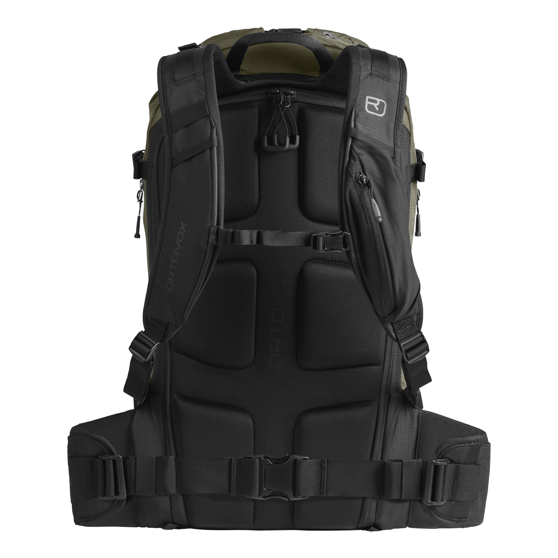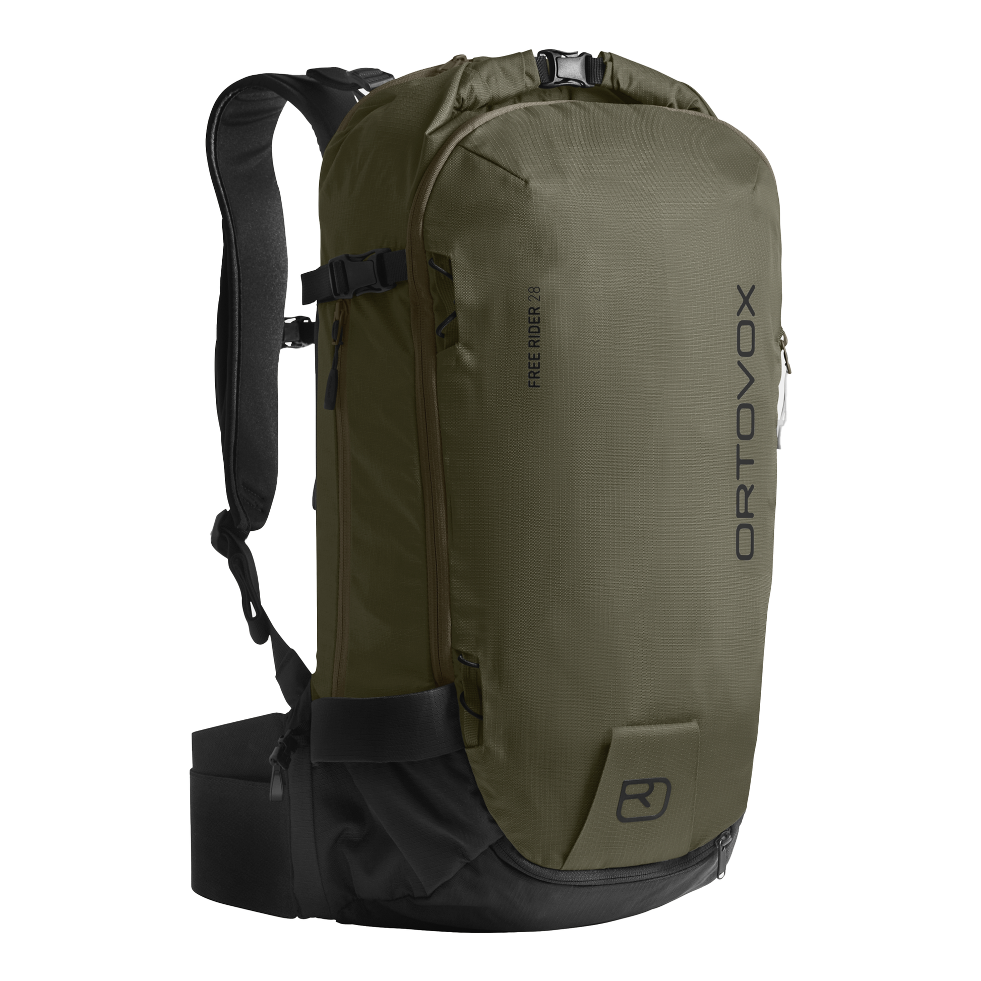 The Ortovox Free Rider 28 is a freeride backpack built to allow control, comfort, and safety. Its flat CLASP FLEX BELT and soft back pads keep the pack stable and close-fitting, offering support and freedom of movement without restricting the spine. Inside, a dedicated pocket allows easy integration of the certified CLASP Spine Protector (sold separately) for added back protection. A roll-top closure and dual access points provide fast entry to gear, while a separate safety compartment keeps avalanche equipment at the ready. External attachments carry skis, ice axe, rope, or helmet, and side compression straps help the pack sit flat and stable during descents. With enough space for skins and crampons, plus hydration compatibility and an emergency card, it’s a versatile and reliable freeride companion. Made from recycled, PFC-free materials, the Free Rider 28 is climate-neutral and mountain-ready.