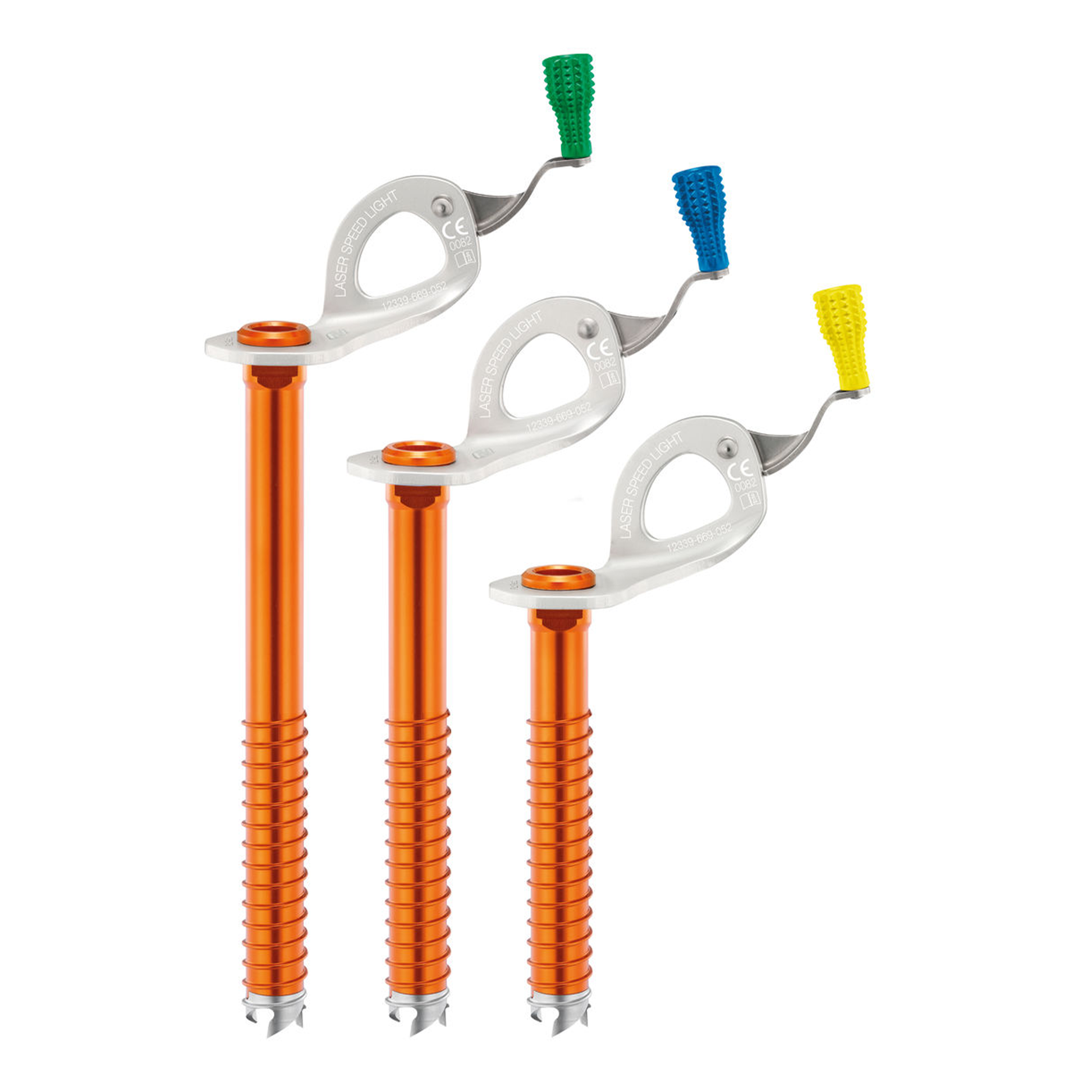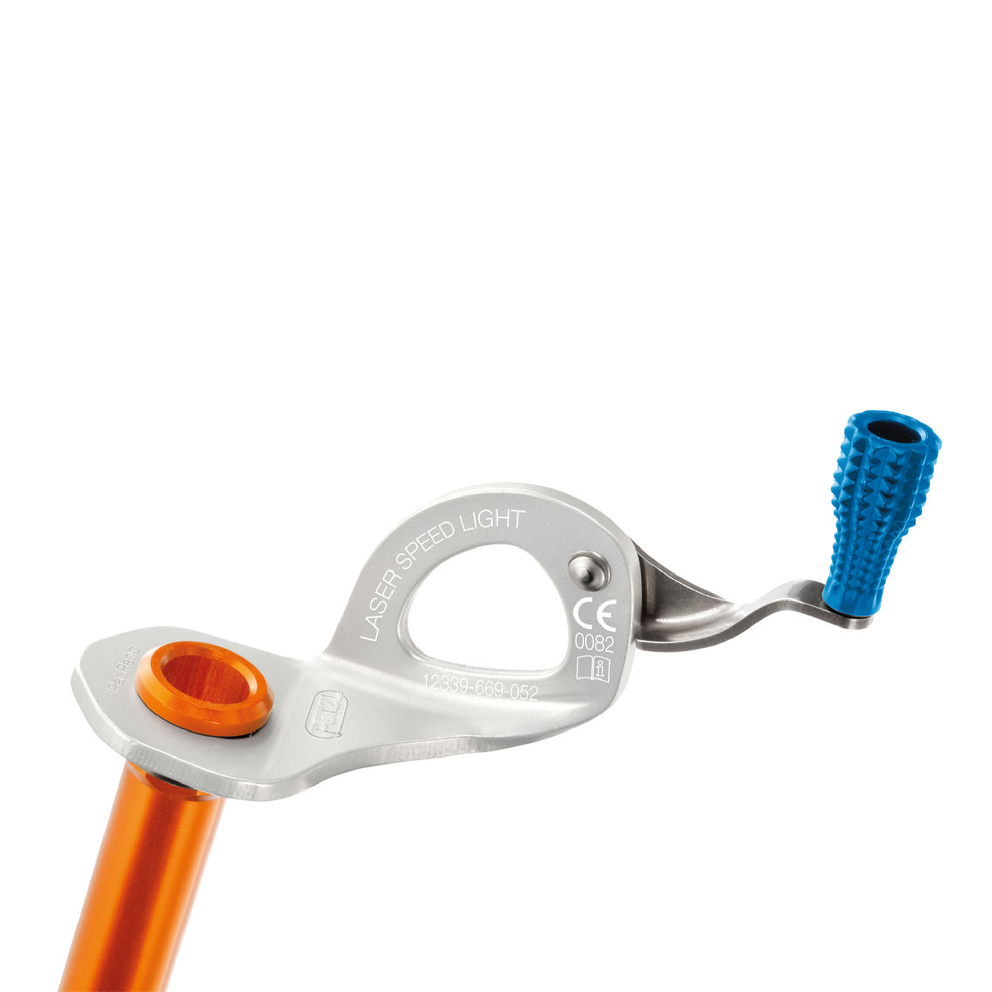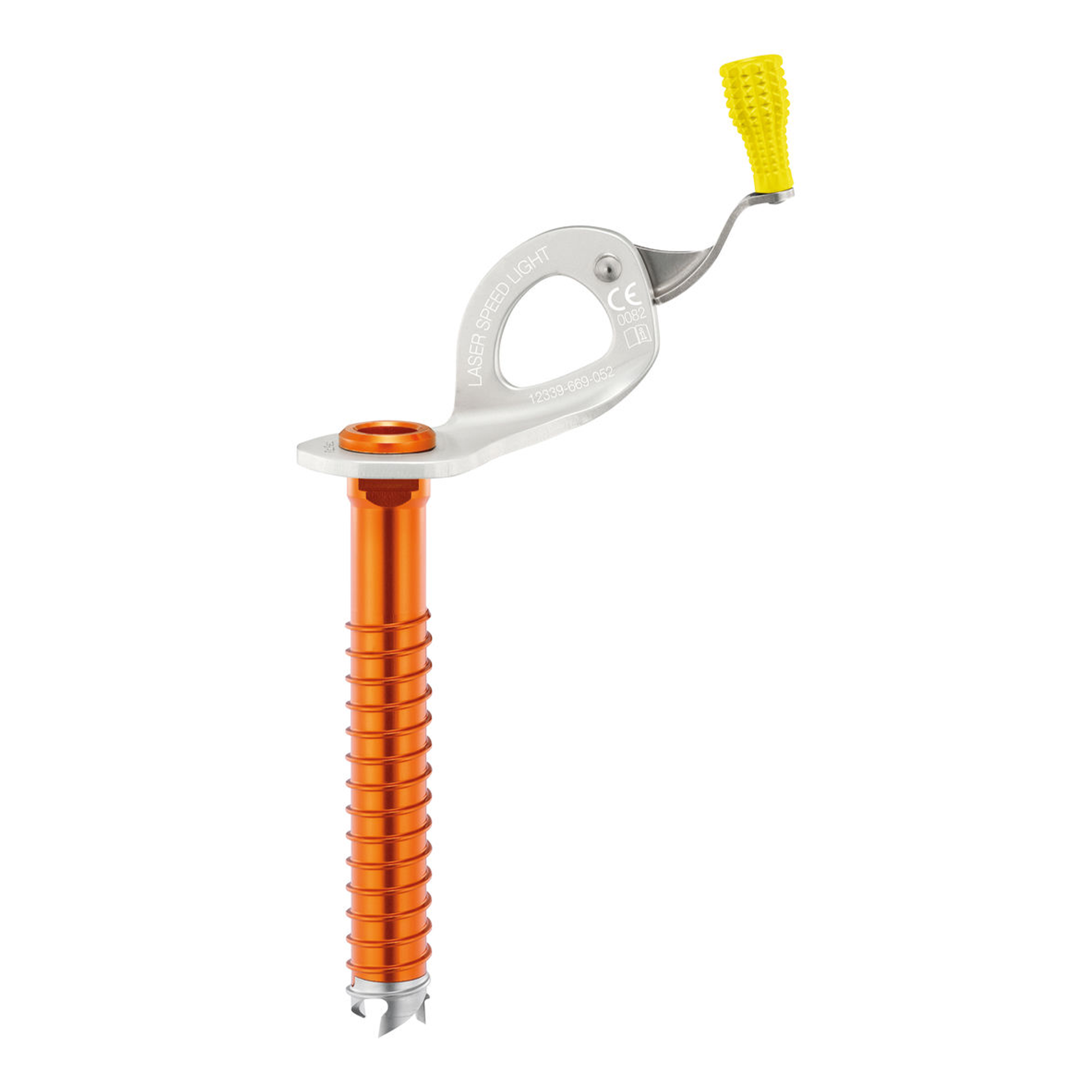 The Petzl Laser Speed Light is an ultralight aluminum ice screw designed for fast and efficient placements where reduced equipment weight is a priority. Featuring a tri-toothed stainless steel drill coupled to an aluminum tube that sheds weight considerably. The compact hanger facilitates screwing into sculpted ice and the integrated crank provides excellent grip and leverage, making it effortless to thread in.