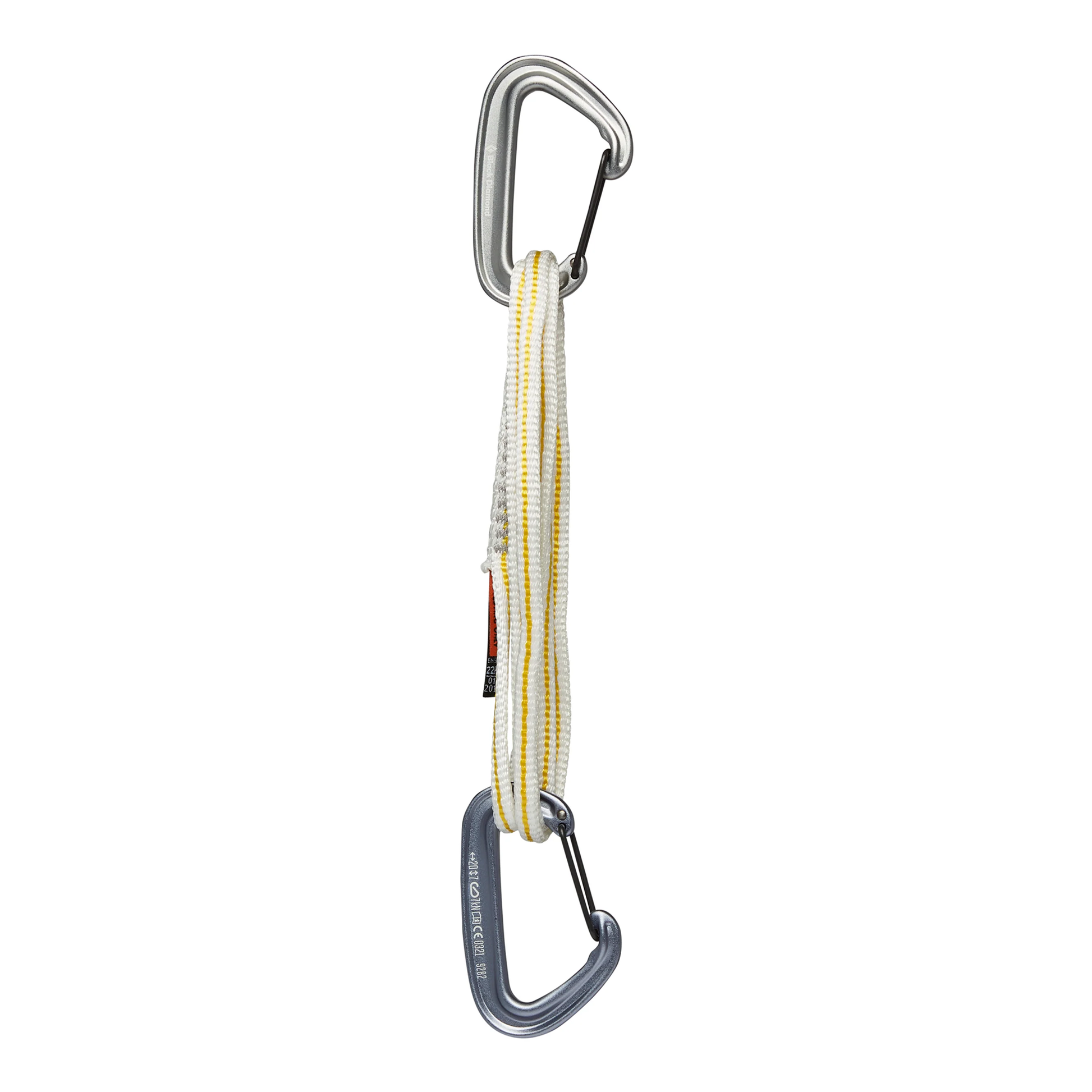 The Black Diamond MiniWire Alpine Quickdraw is built to be fast and light. Featuring two MiniWire carabiners and a durable 60cm Dynex® sling, it’s perfect for alpine routes, extended placements, and wandering pitches. The hot-forged construction optimizes strength while the wiregate design reduces gate flutter and resists freezing in cold conditions.