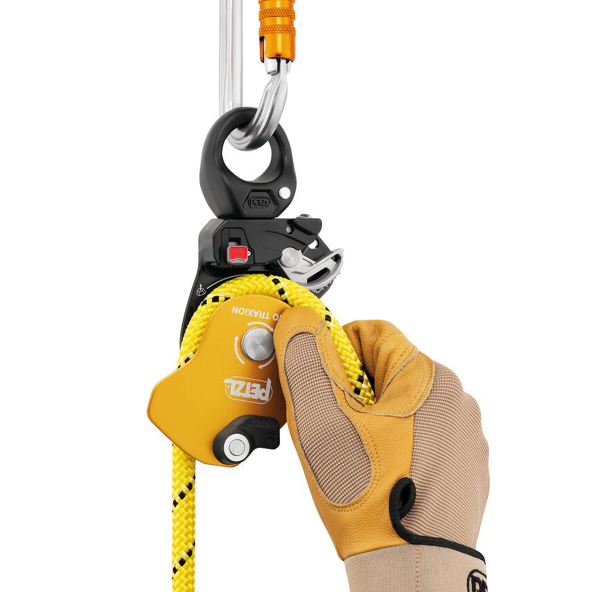 Possible to open, even when attached to the anchor, the PRO TRAXION progress-capture pulley is designed for setting up haul systems. With a large diameter sheave mounted on sealed ball bearings and excellent efficiency, it is particularly suitable for hauling heavy loads. The swivel makes it easier to operate, allowing the pulley to be oriented under load and for direct connection of carabiners, ropes, or slings.