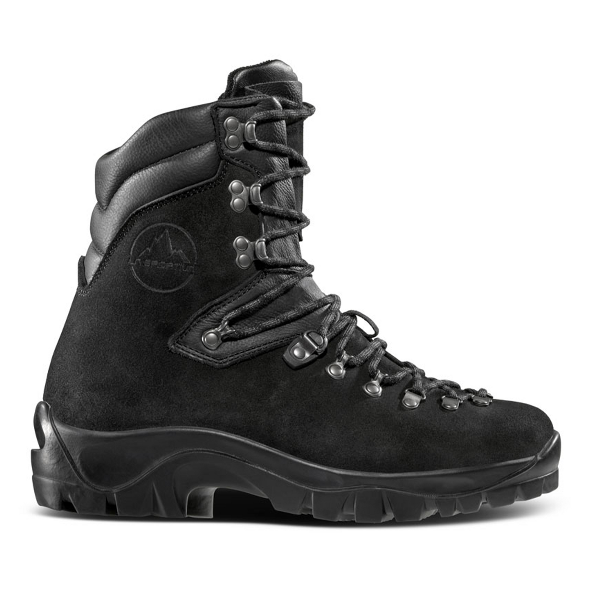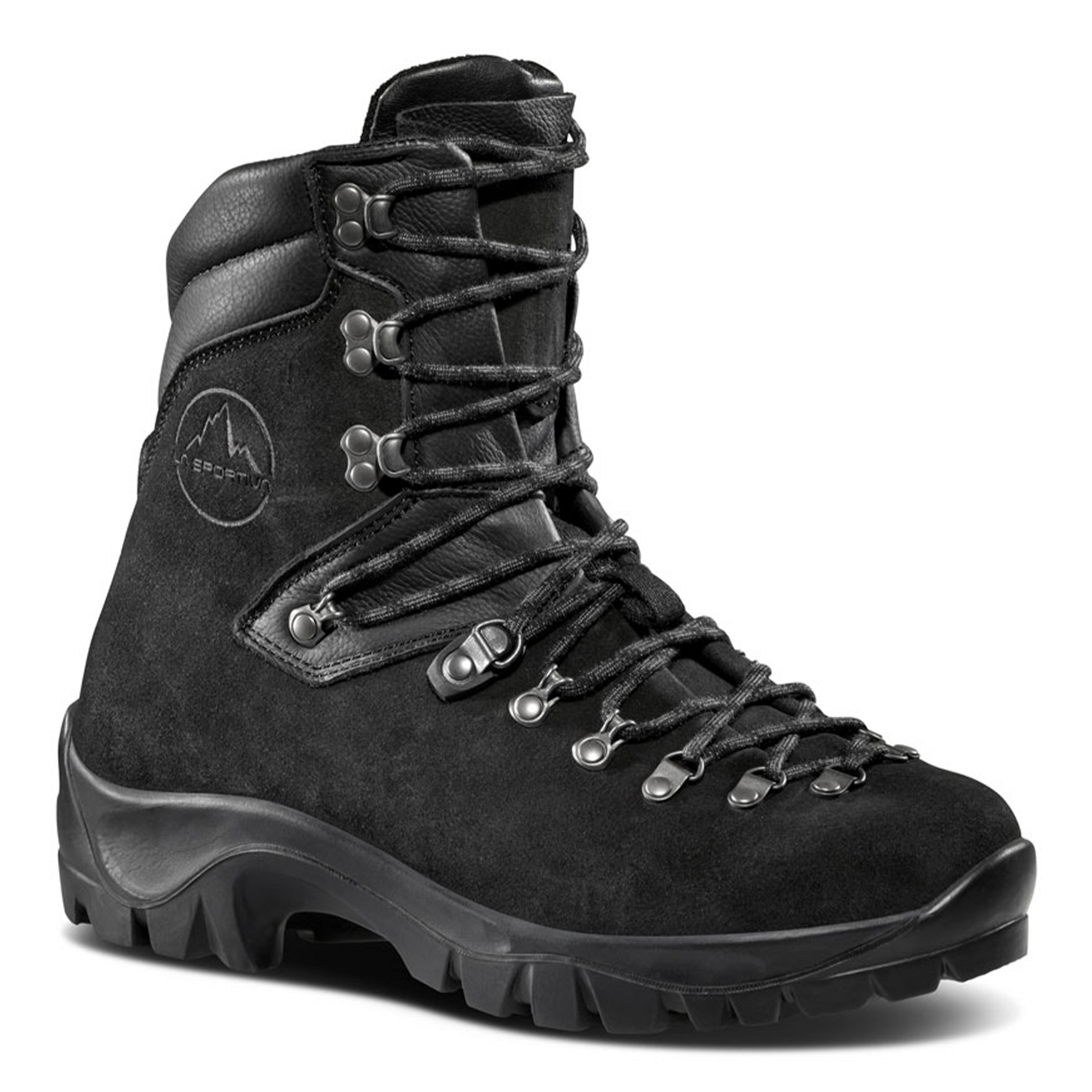 The La Sportiva Ridgeline is a classically styled leather mountaineering boot designed for forest management, post-fire cleanup, and rugged outdoor work. Engineered to handle demanding conditions, it offers exceptional durability and support for heavy treks over rough terrain in extreme environments. Constructed with super-durable roughout leather, the Ridgeline is built to withstand harsh conditions, while the Vibram® Fire & Ice outsole ensures superior traction on slippery, uneven ground, making it ideal for both forested areas and rocky slopes. The boot’s design provides ankle support and stability, making it a reliable choice for long hours and heavy loads.
