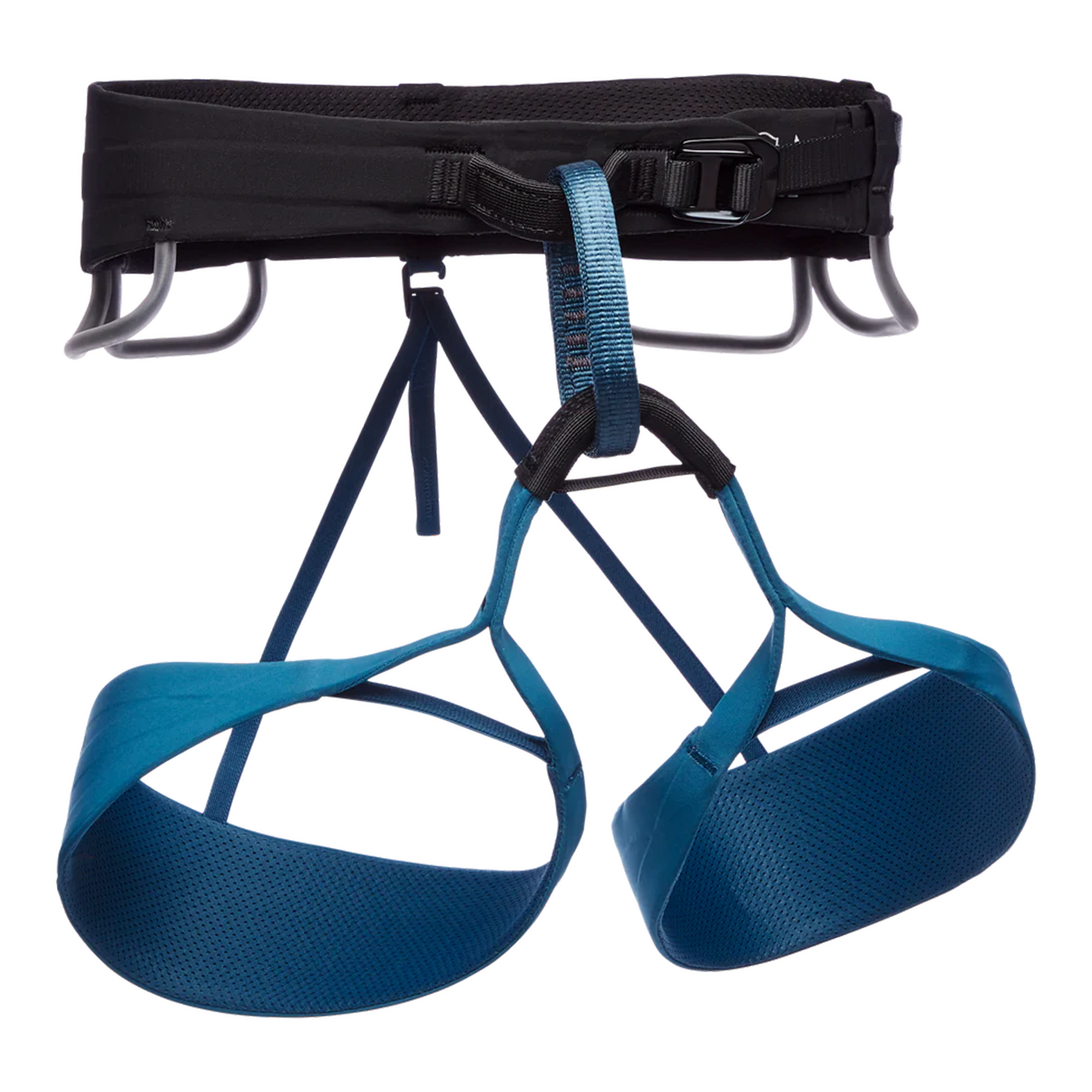 The Black Diamond Solution Harness is built for sport climbers who prioritize comfort and freedom of movement. Featuring Fusion Comfort Technology™, it evenly distributes pressure while maintaining a sleek, low-profile fit. The contoured waistbelt eliminates pressure points, while fixed leg loops provide a secure, streamlined feel. Four pressure molded gear loops offer ample racking space, making it ideal for projecting routes or long belays.