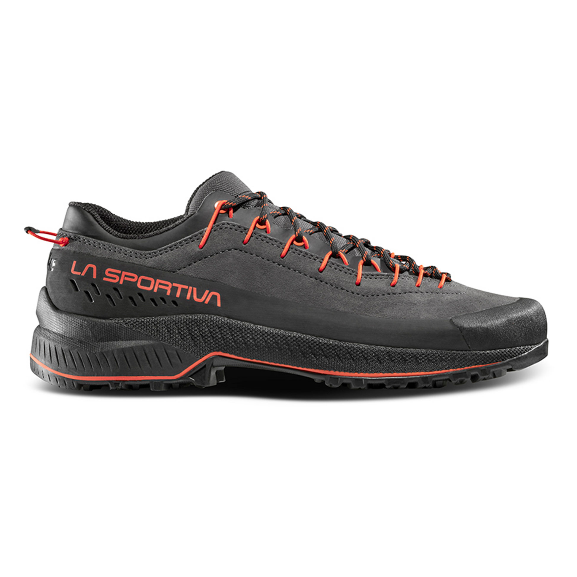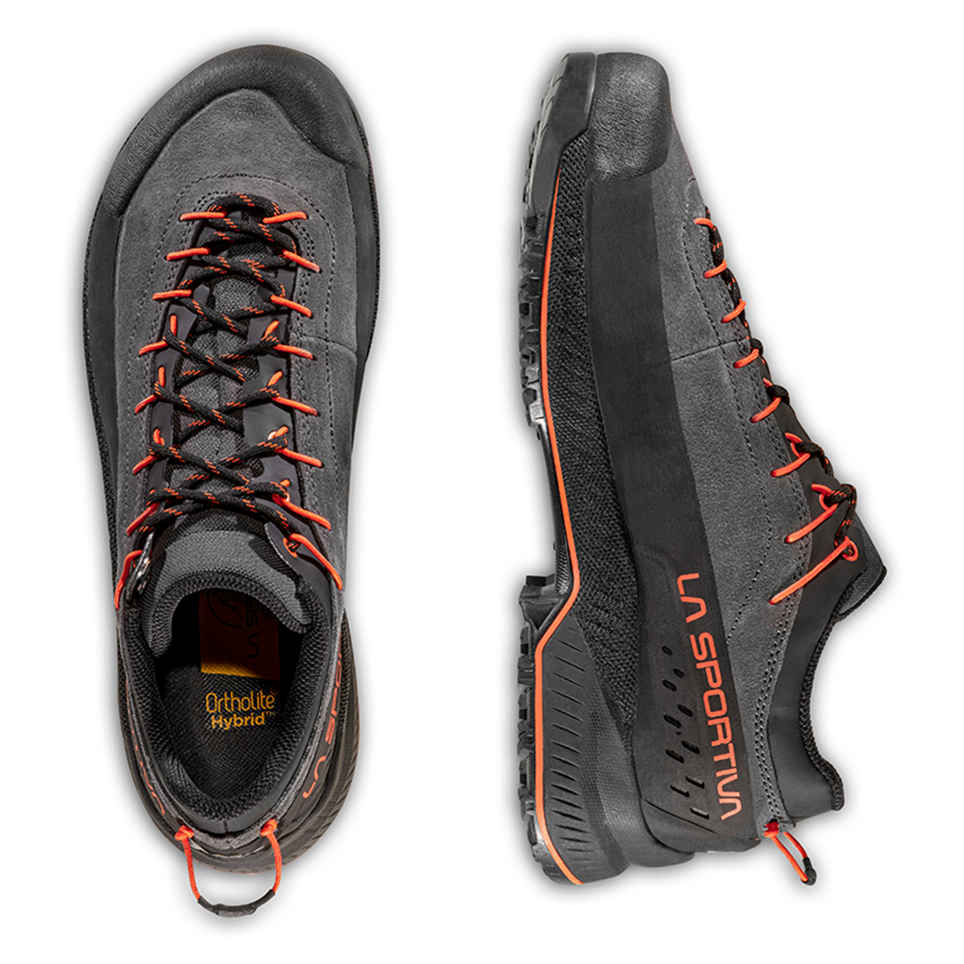 The La Sportiva TX4 Evo is a rugged and versatile approach shoe built for technical terrain, long approaches, and scrambling. Designed for durability and comfort, it provides a stable platform with excellent grip and support for climbers and hikers alike. Equipped with a Vibram® Megagrip™ outsole and Impact Brake System™, the TX4 Evo ensures outstanding traction on rock and uneven surfaces. The Eco-leather upper enhances durability while reducing environmental impact, and the Mythos-style lacing offers a precise, adjustable fit. A cushioned EVA midsole provides shock absorption without compromising sensitivity, making it ideal for extended wear.