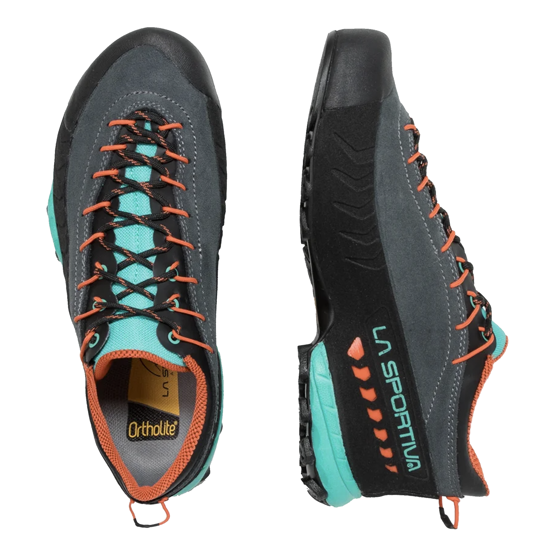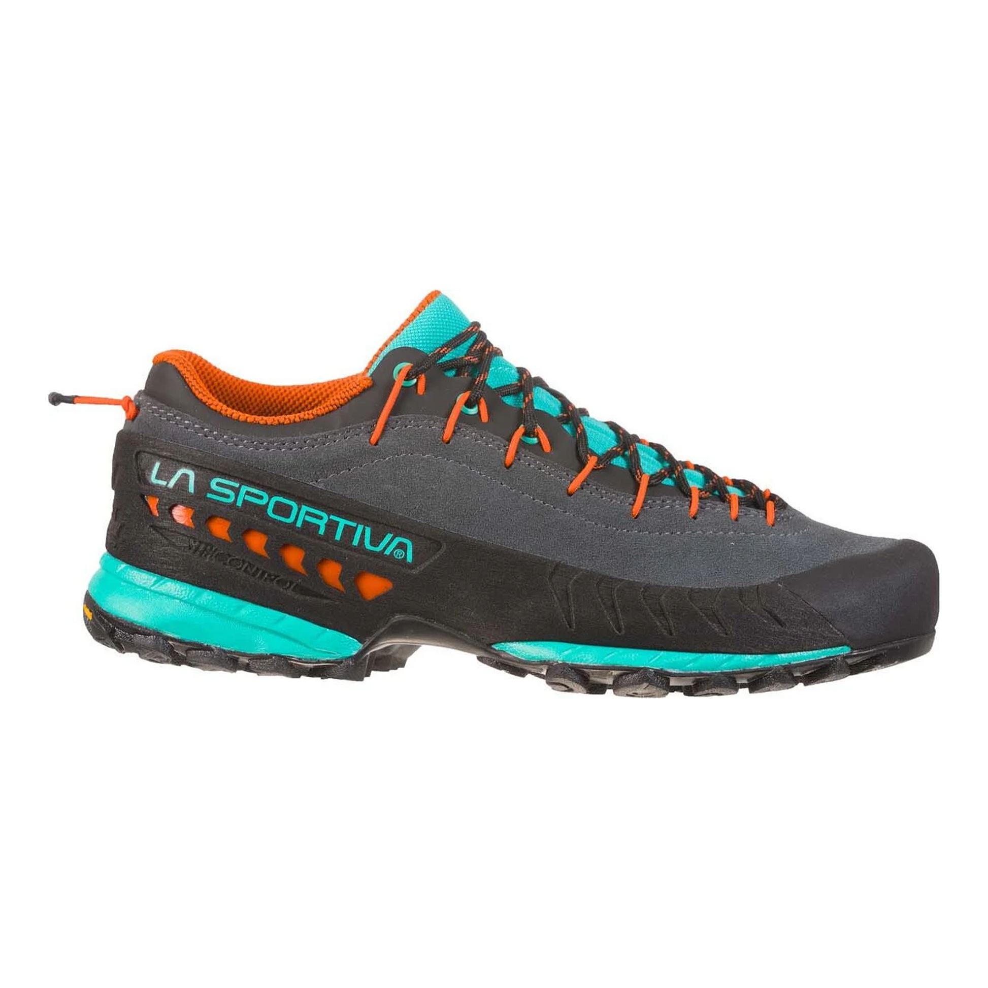 The La Sportiva TX4 is a rugged and versatile approach shoe built for technical terrain, long approaches, and scrambling. Designed for durability and comfort, it provides a stable platform with excellent grip and support for climbers and hikers alike.Equipped with a Vibram® Megagrip™ outsole and Impact Brake System™, the TX4 ensures outstanding traction on rock and uneven surfaces. The Eco-leather upper enhances durability while reducing environmental impact, and the Mythos-style lacing offers a precise, adjustable fit. A cushioned EVA midsole provides shock absorption without compromising sensitivity, making it ideal for extended wear.