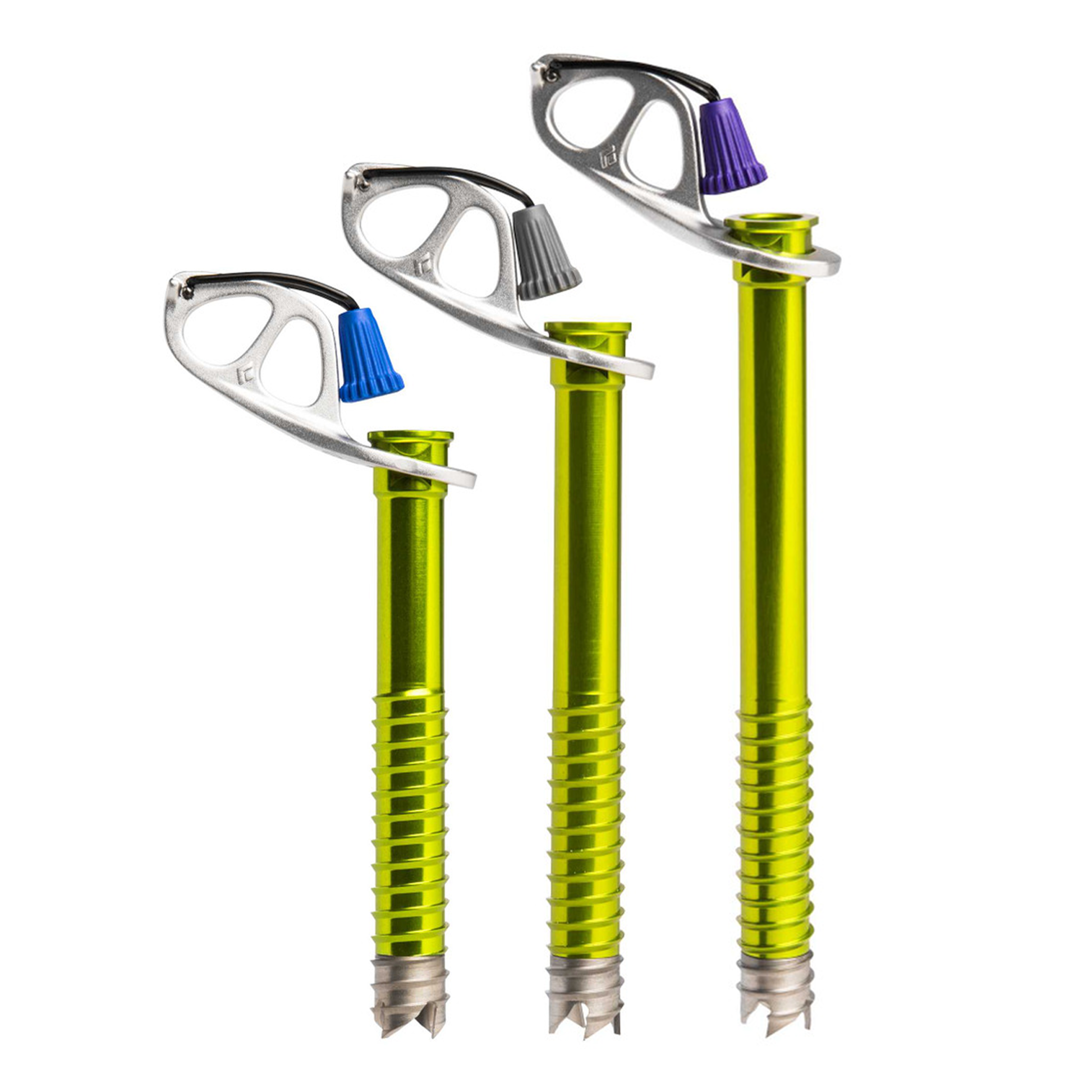 The Black Diamond Ultralight Ice Screw is designed for ski mountaineering, glacial travel, and high-end alpinism. Weighing 45% less than the Express Screws, it features a steel tip and aluminum body combined with a forged aluminum hanger that gives this screw it's exceptionally low weight. Two clip points add versatility and the wire-gate handle further reduces weight while offering easy click open and close functionality. Easily identifiable by length with Black Diamond's classic color scheme, the Ultralight Ice Screw is the perfect choice for climbers seeking a lightweight and efficient tool for technical ice climbing.